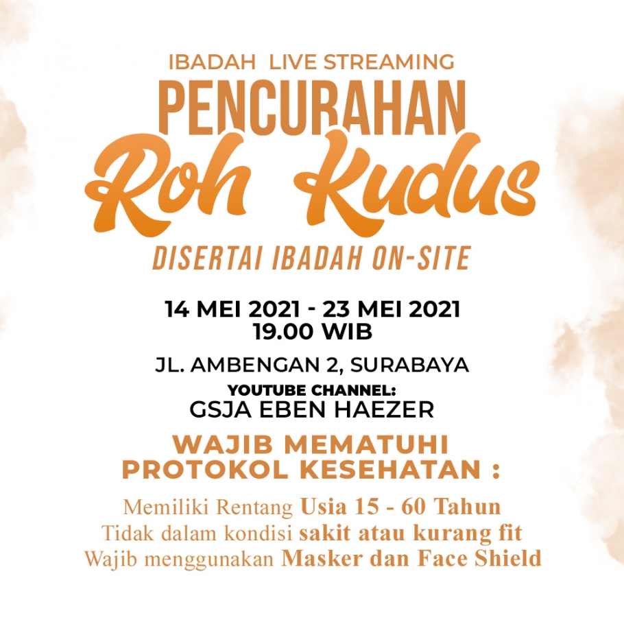 Ibadah ini akan dilaksanakan selama 10 Hari mulai tanggal 14 Mei 2021 sampai 23 Mei 2021 pukul 19.00 WIB