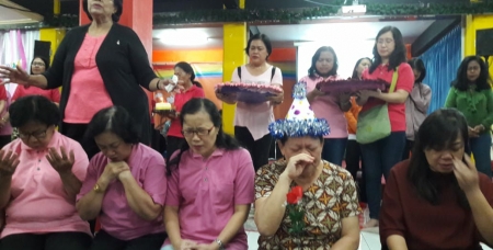 1 April 2019 Komisi Sekolah Minggu mengadakan Persekutuan Doa Guru-guru sekolah minggu yang ada di pusat maupun di Satelit. Dengan total kehadiran 140 orang, acara ini berbentuk Doa, training guru dan acara spesial ulang tahun Ketua Sekolah Minggu, Ibu Ellys Hananya. Puji Tuhan Oma Kaihatu menjadi pembicara dan memberkati setiap guru-guru yang hadir dengan Firman Tuhan.