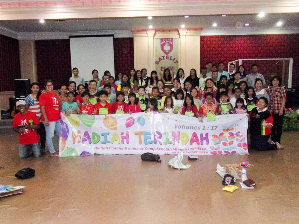 Acara dilanjutkan dengan Summer Camp yang diadakan di GSJA Satelit Elim dengan peserta 43 anak. Summer Camp tahun ini mengambil tema: HADIAH TERINDAH yang diangkat dari Yohanes 1:17. Berkat jerih lelah para guru sekolah minggu, sesi-sesi dan permainan yang ada di Summer Camp ini sangat memberkati anak-anak.