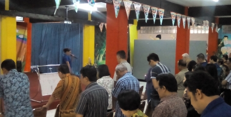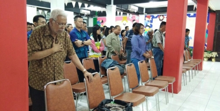 Sebelum melakukan Evaluasi bersama, Staf dan pengerja melaksanakan chapel pagi yang dilayani oleh Ibu Pdt. Popy, seorang Gembala di Saparua - Ambon. Ibadah Chapel Pagi berlangsung dengan baik dan kemudian dilanjutkan dengan Rapat Evaluasi Program. Rapat Evaluasi dipimpin oleh Majelis Gereja, dimulai dari Komisi dan kemudian Area menyampaikan evaluasi yang berhubungan dengan pelayanan disetiap Komisi dan wilayah.