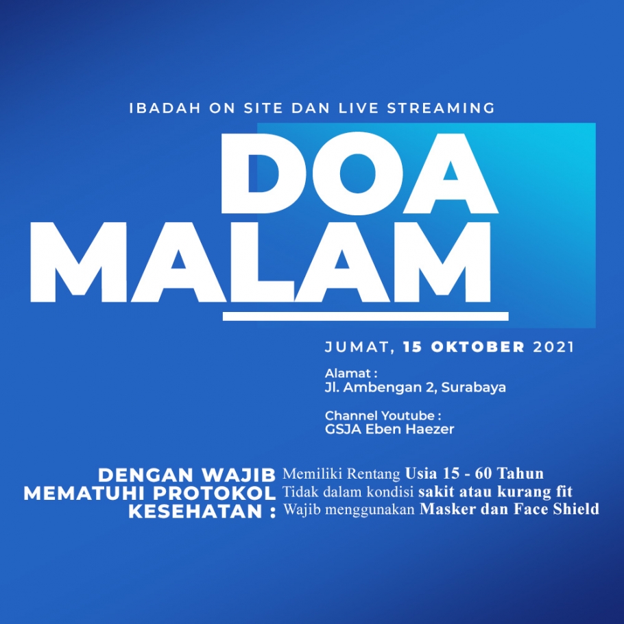 Ibadah ini akan dilaksanakan secara Live Streaming dan On Site.