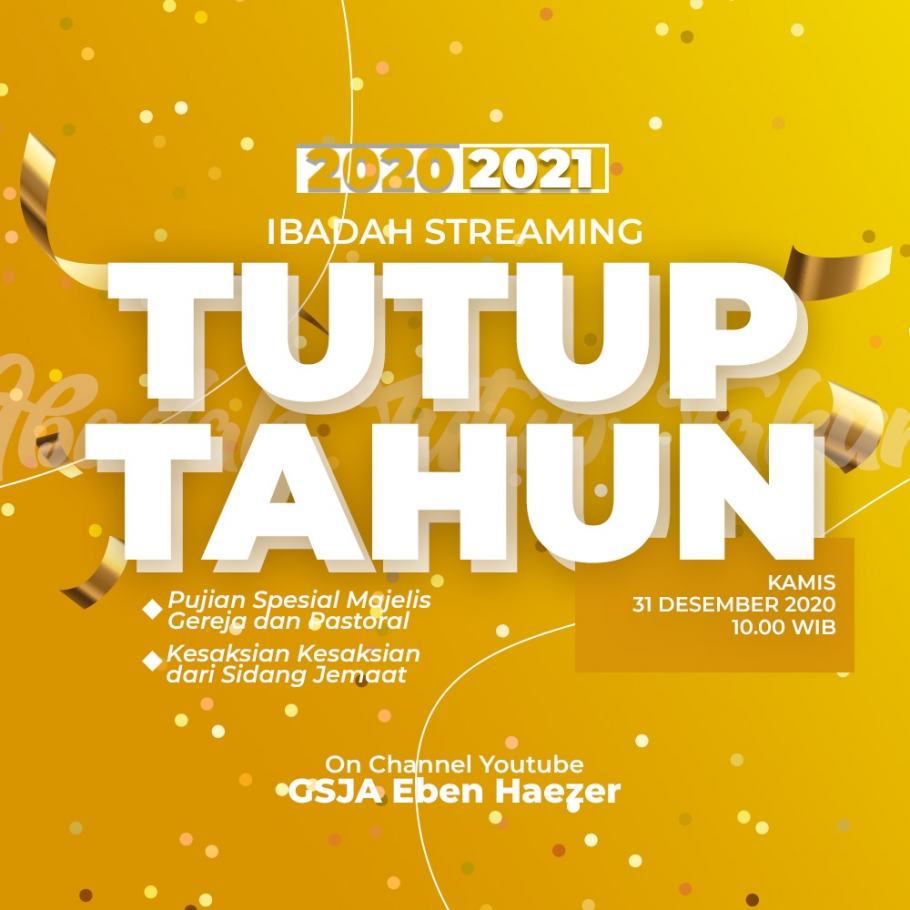 Kamis, 31 Desember 2020 pukul 22.00 WIB di Youtube Channel : GSJA Eben Haezer