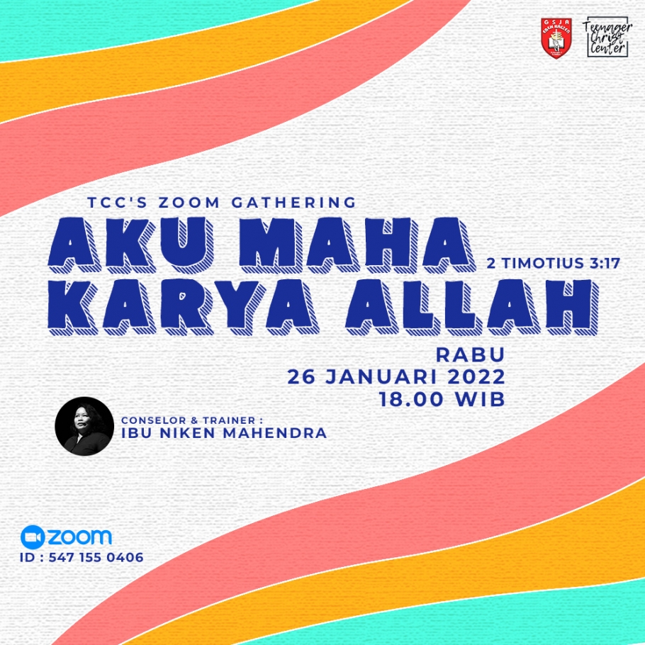 Yuk gabung dalam acara zoom Gathering TCC pada tanggal 26 Januari 2022 pada pukul 18.00 WIB
