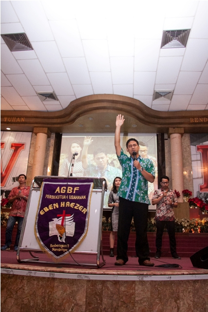 Bertempat di aula utama GSJA Eben Haezer Ambengan, komunitas AGBF melangsungkan kegiatan ibadah rutin bulanannya. Pada bulan ini, ibadah ini mengambil tema “Kasih Menembus Batas.” Ibadah ini diadakan setiap hari Senin ketiga, setiap bulannya. Dan pada bulan ini ibadah jatuh pada tanggal 22 Agustus 2016, pada pukul 18.30 WIB, dengan mengambil sub tema: “Kobarkan Kasihmu, Jangan Sampai Pudar Menjelang akhir Zaman.” Ibadah ini terbuka untuk umum dan yang menjadi pembicara dalam ibadah ini ialah Bapak Gideon Yusdianto (Penyiar Radio Bahtera Suara Yudha). Diharapkan melalui ibadah ini diharapkan setiap jemaat yang hadir dapat merasakan lawatan kuasa Allah melalui ibadah tersebut dan mengingatkan jemaat supaya mereka tetap menjaga kasih mereka, baik kepada Tuhan dan sesama hingga Tuhan Yesus datang kembali.
