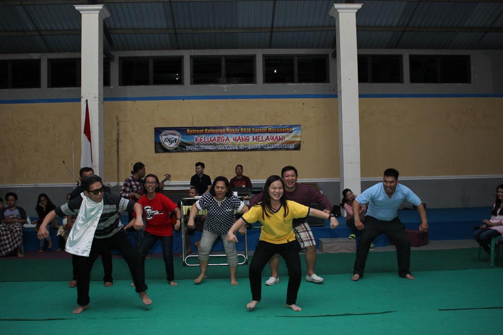 Segala puji syukur bagi Tuhan Yesus Krsitus atas anugerahNya sebab kami dari HF Wilayah Barat III bersama satelit boleh mengadakan kegiatan di luar kota, tepatnyadi Trawas (Pasuruan). Jemaat Tuhan yang ikut acara ini ada 156 orang yang terdiri dari dewasa, muda dan anak-anak. Kegiatan berlangsung pada tanggal 11 – 12 September 2016. Kami berangkat setelah mengikuti ibadah raya. Tema dan sasaran kegiatan kami adalah Keluarga Yang Melayani (Yosua 24 : 15). Ini merupakan kerinduan jemaat Tuhan di akhir zaman ini; yaitu keluarga demi keluarga berjuang mempertahankan iman, melayani dan membawa mereka yang belum percaya kepada Tuhan untuk mengenal pribadi Juruselamat manusia, Tuhan Yesus Kristus. Firman Tuhan dilayani oleh Pdt. Dwijo Santoso selaku gembala GSJA Satelit Maranatha dan Pdt. Amelia Rumbiak dari SATI – Malang; sementara untuk pelayanan anak-anak sekolah minggu ditangani tim sekolah minggu dari SATI.